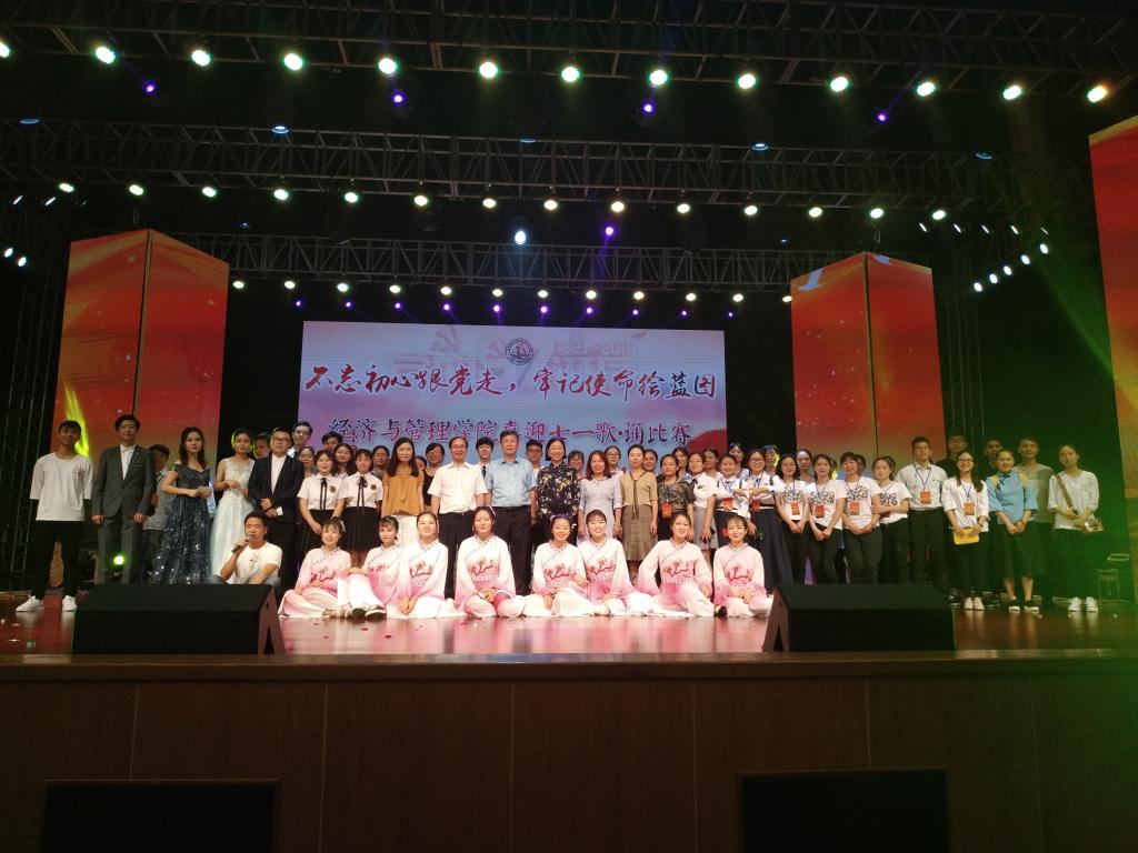在这次“不忘初心跟党走,牢记使命绘蓝图”歌·诵比赛中各参赛班级表演形式多样,《我的祖国》、《强军战歌》、《走向复兴》等一首首主题鲜明、催人奋进的经典歌曲及朗诵表演轮番上演。19个参赛班级都以嘹亮的歌声和饱满的热情表达对党的忠诚和热爱,唱出了青年学子的风采,诵出了青年学子的心声,赢得现场观众的掌声。经过2个小时的激烈角逐,15级信管班歌曲《走向复兴》等表演荣获一等奖、15经济学歌曲《明天会更好》等表演荣获二等奖、15市场营销2班歌曲《精忠报国》等6个表演获三等奖。15财管2班等四个班级荣获优秀双学集体、优秀班级,陈梦等12名同学荣获优秀党务工作者称号,王惠雁等四名同学荣获优秀党员称号,周昌林等42名同学荣获优秀双学个人称号。此外,王惠雁等7名同学被评为党建文化、微党课获奖者,孟洪林等12名同学被评为读书月获奖者,各位领导及评委老师分别为获奖的班级以及个人颁奖。