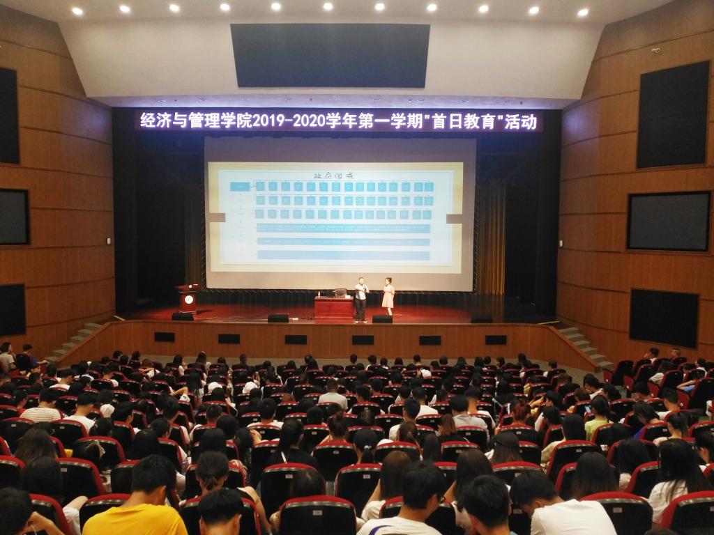 为进一步贯彻落实习近平新时代中国特色社会主义思想,加强公司思想政治教育,强化员工爱国、奉献、敬业、自强意识,2019年8月25日,经管公司在太阳集团tcy8722花溪校区大礼堂开展了以“青春心向党,建功新时代”为主题的首日教育活动。此次活动由贵州江月兴科技集团董事长何世江主讲,公司师生共近1300人参加,公司党委副书记赵本喜主持。