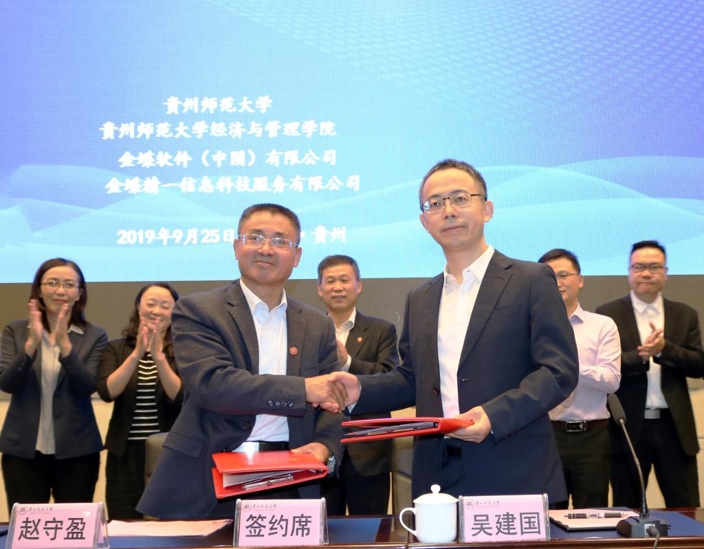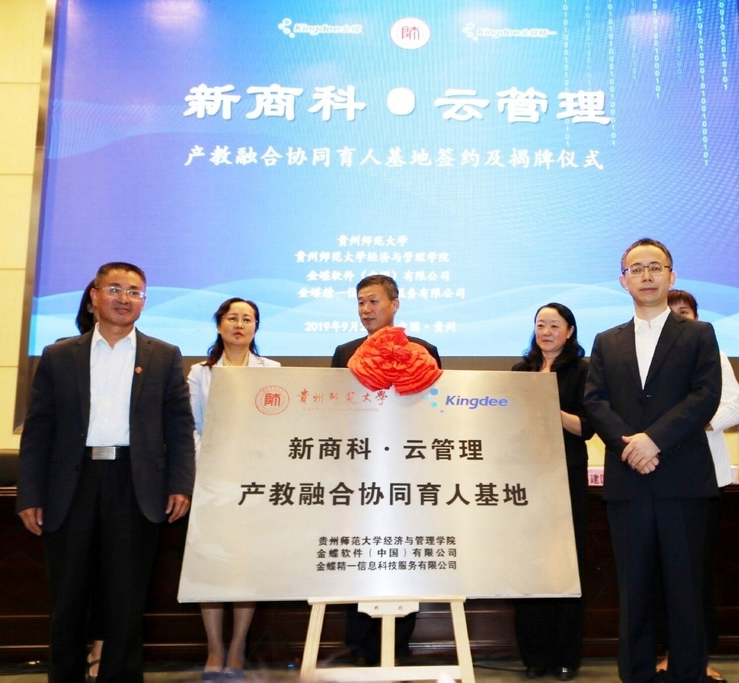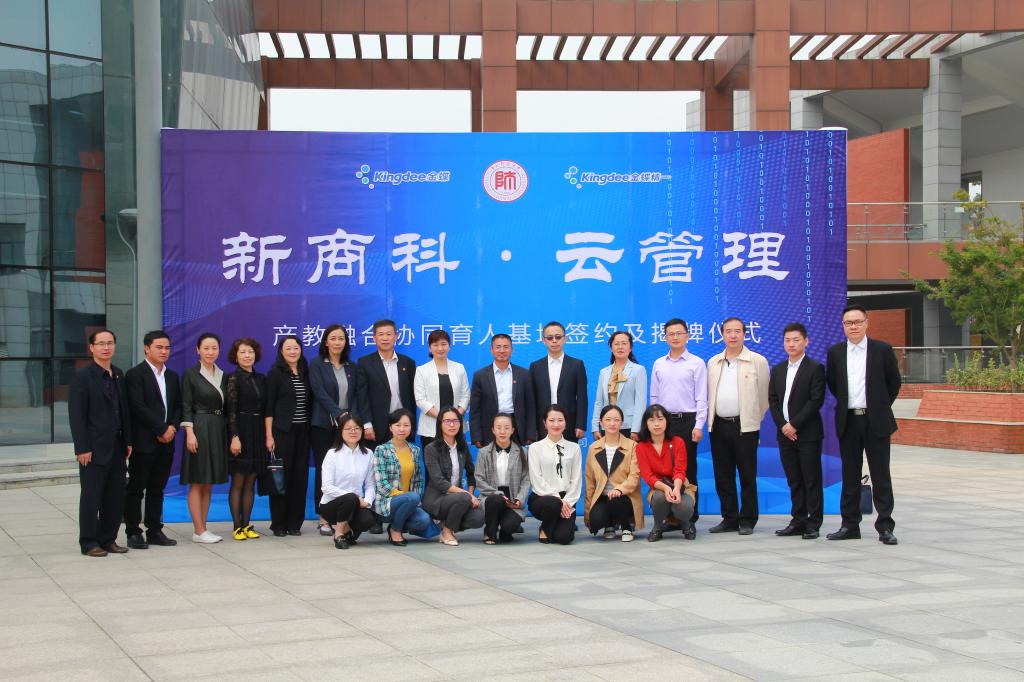 之后,赵守盈代表公司与金蝶软件(中国)有限公司签署了合作协议。伴随着热烈掌声,赵守盈与吴建国为新商科·云管理产教融合协同育人基地正式揭牌。此举标志着公司与金蝶软件(中国)有限公司战略合作关系向更深层次方向推进。