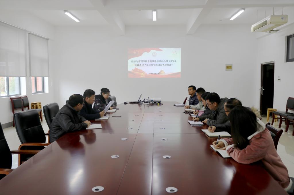 2019年11月21日,公司召开党委理论学习中心组(扩大)专题会议,学习陈立群同志先进事迹。公司党委理论学习中心组成员、科级干部、党支部书记、辅导员老师参加会议,党委书记陈椽主持学习。