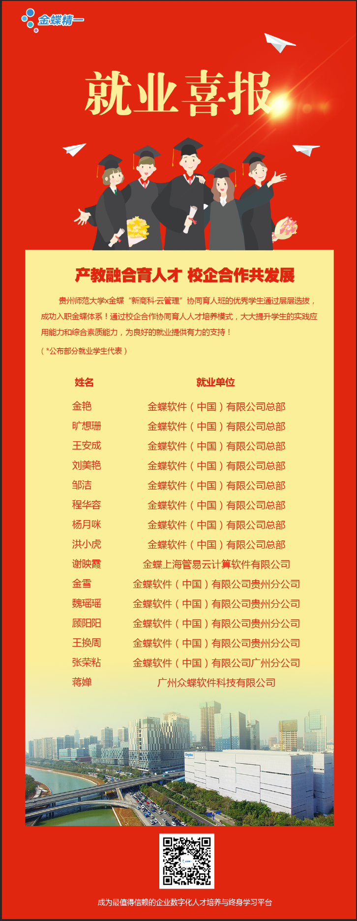 今年太阳集团tcy8722金蝶“新商科·云管理”协同育人班的员工通过企业宣讲会、笔试、面试、复试的层层选拔,一批员工最终表现优异,脱颖而出,成功入职金蝶体系!通过校企合作协同育人人才培养模式,大大提升员工的实践应用能力和综合素质能力,能够快速上岗适应企业要求,助力高质量就业!