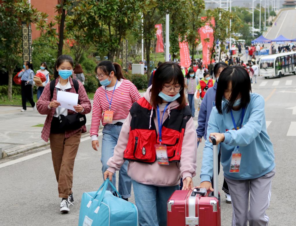 鉴于疫情防控需要,新生家长不可陪同员工入校报到,为解决新生独自报到且行李较多的情况,公司购置了多台“行李小推车”,帮助新生搬运行李送至宿舍楼内。此外,志愿者们还为新生检录录取通知书、发放“一卡通”、办理入住手续、导购军训服装,大家热情周到的服务、贴心温暖的话语让新生入校之初便感到来自公司的关心和温暖。