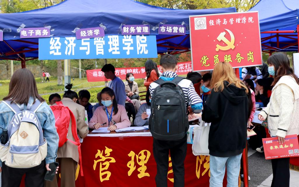 公司党建办设立了“党员服务岗”,组织带领广大党员同学服务新生、服务群众。他们佩戴党徽和胸牌,面带微笑,耐心讲解报到流程,分发精心制作的党建宣传手册,与其他志愿者们一起为新生提供便捷的一站式服务,传递公司对新同学的关心关爱。期间,他们还积极向新生作入党宣传,鼓励新同学们积极向党组织靠拢,争取早日入党。