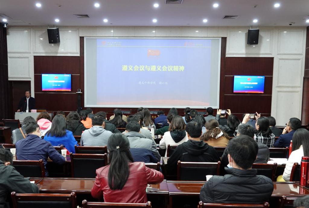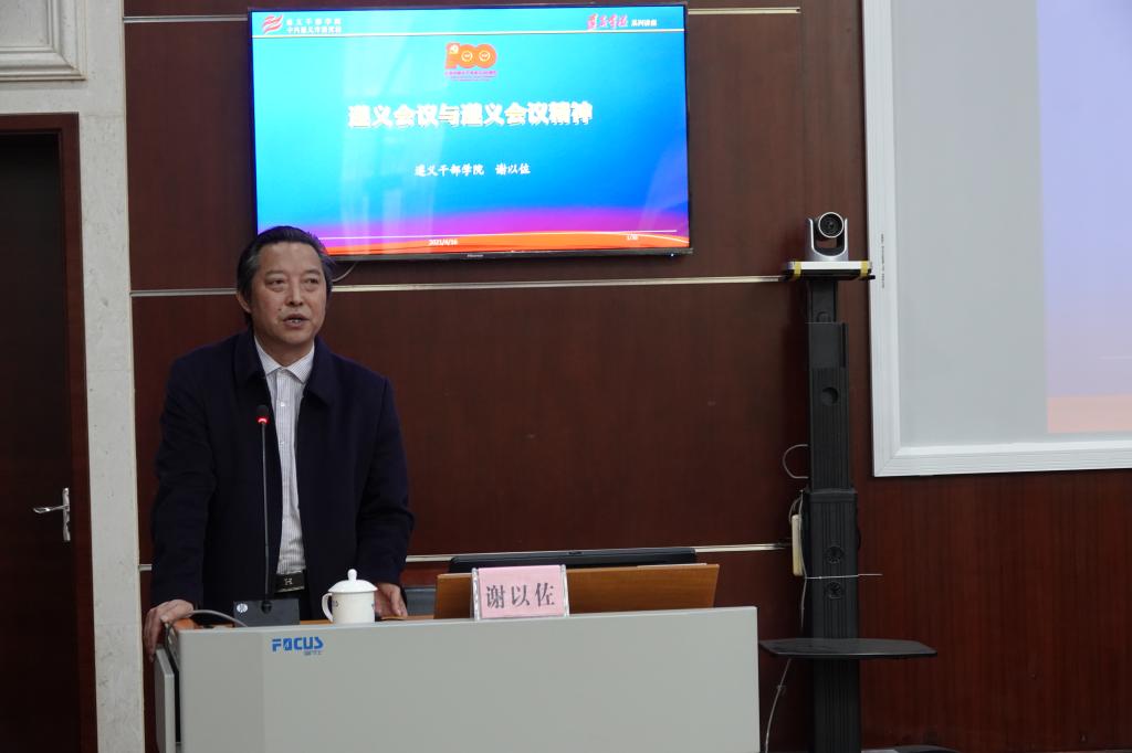 在中国共产党成立100周年之际,重温遵义会议这段重要历史,感悟伟大的遵义会议精神,对共产党员巩固初心使命、落实新时代党的建设总要求,坚定共产主义理想信念具有十分重要的意义。为深入贯彻落实中央、省委和公司党委党史学习教育动员大会精神,教育引导党员干部学史明理、学史增信、学史崇德、学史力行,缅怀党的光辉历程,讴歌党的丰功伟绩,从百年党史中汲取奋进力量,2021年4月16日,太阳集团tcy8722全体党员教师赴遵义市委党校开展党史学习教育专题党课,特邀遵义市委党校副董事长、遵义干部公司副经理、二级巡视员谢以佐副教授作题为《遵义会议和遵义会议精神》的专题经典党课。活动由公司党委书记吕萍主持。