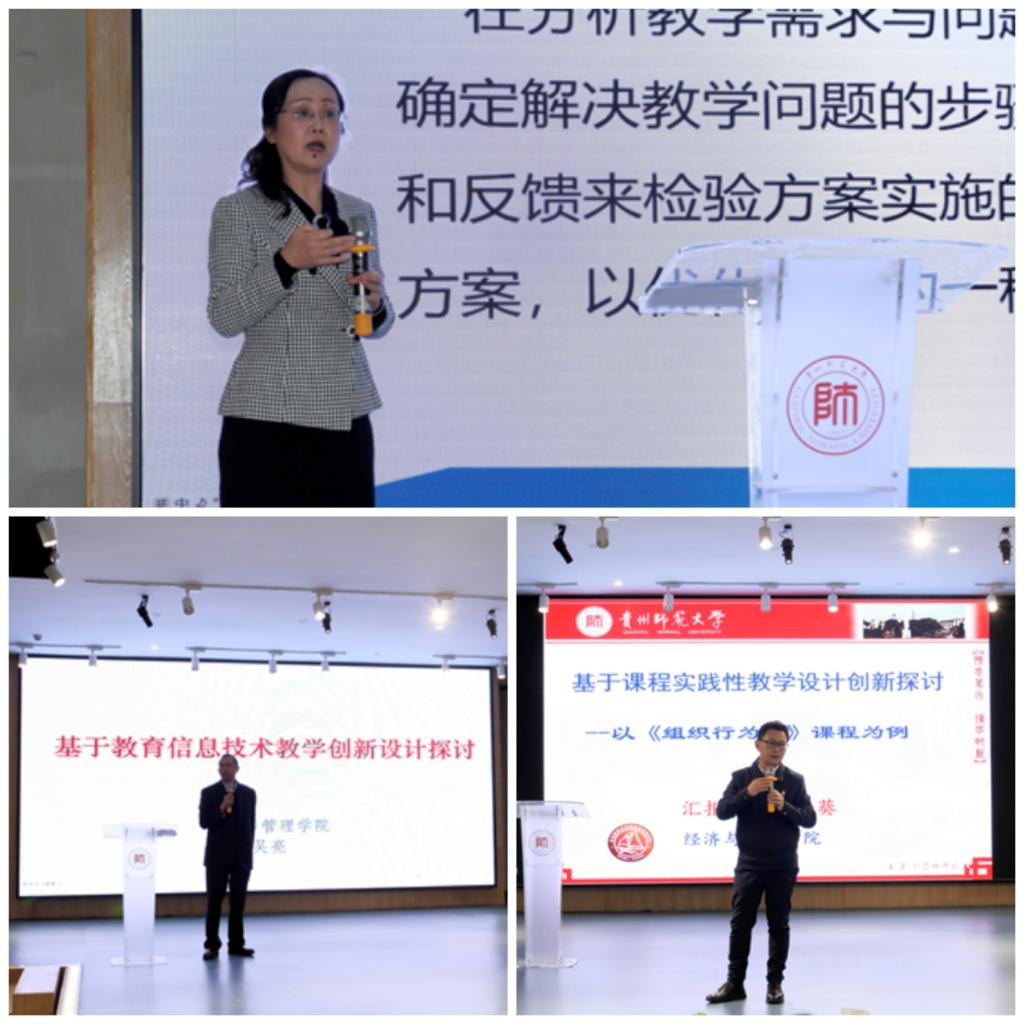吕萍教授认为,“课程思政”是教师教学的常态、本分和初心,她将自己及课程团队如何挖掘“课程思政”元素,并将其融入到教学设计、教学实践和教学评价各个环节的成功经验,向在场的教师们进行了分享。吴亮教授就“运用信息化技术进行教学”的经验与大家进行了交流,他认为通过信息化教学可以有效促进教育思想、教育观念以及教学方式的交流和传播。陈英葵教授以《组织行为学》课程为例,与同行们交流了将实践性教学融入理论教学的成功实践,重点介绍了多层次、多形的式教学实践设计,对构建立体式、复合型实践教学新模式的积极作用。