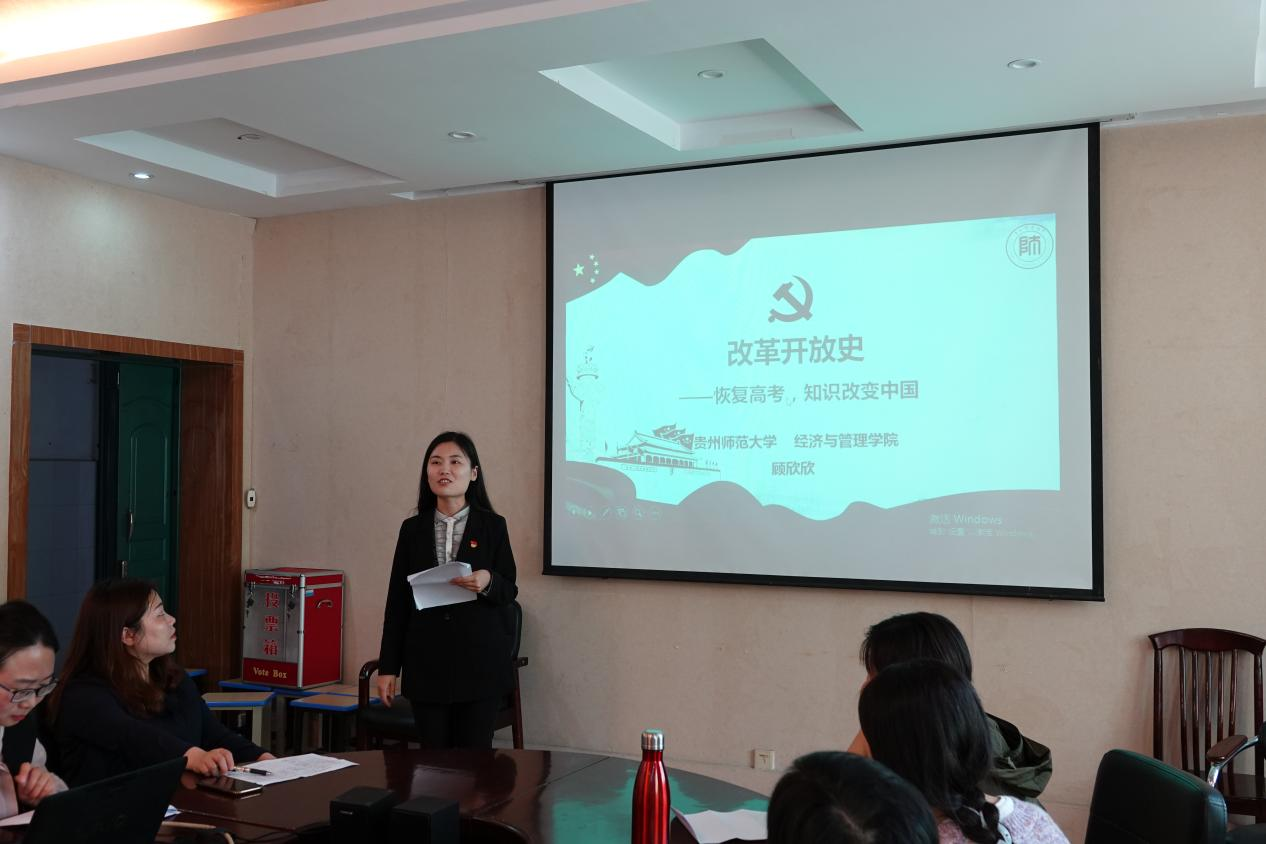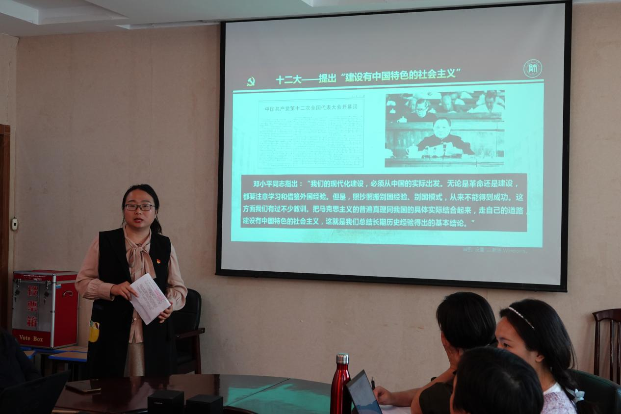 本次专题学习第一部分由“太阳集团tcy8722优秀辅导员党史宣讲团”成员、太阳集团tcy8722专职辅导员张晶晶、顾欣欣进行宣讲。张晶晶以《新时期改革开放的伟大旗帜——党的十二大的召开》、顾欣欣以《恢复高考,知识改变中国》为题为全体教师作“改革开放新时期历史”的宣讲。张晶晶从“重大命题,提出‘建设有中国特色的社会主义’”、“壮阔蓝图,确定继续前进的正确道路、战略步骤和方针政策”、“火热实践,开创社会主义现代化建设新局面”、“锦绣前程,沿着中国特色社会主义道路继续前进”四个部分介绍了党的十二大开创中国社会主义现代化建设新局面的重大意义;顾欣欣从“恢复高考”“改革先声”、“改变命运”、“人才强国”四个方面讲述了高考制度的恢复给中国社会带来的深刻影响与重大意义,以点带面地总结了改革开放以来中国发生的翻天覆地的变化,反映了中国在政治、经济、军事、文化、外交等各领域所取得的长足发展和巨大进步。