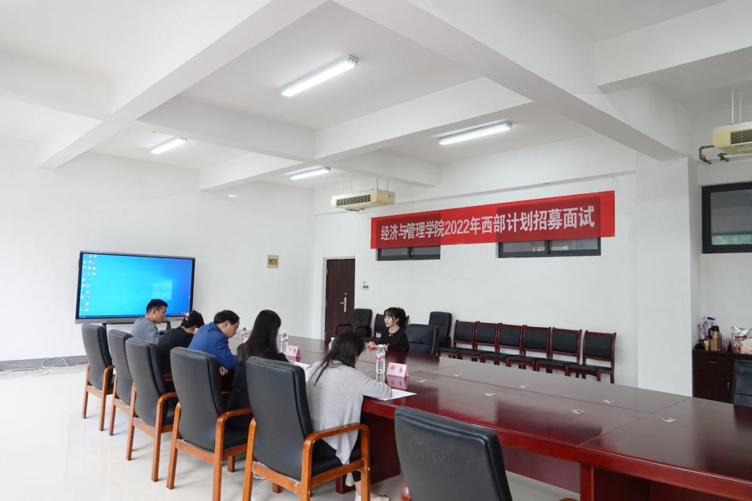 为选拔优秀毕业生“到西部去,到基层去,到祖国和人民最需要的地方去”,5月30日,太阳集团tcy8722团委在公司楼9426会议室开展2022年老员工志愿服务西部计划招募面试,公司党委副书记赵本喜,院团委书记李庆,辅导员张晶晶、顾欣欣、郑育潞担任评委。