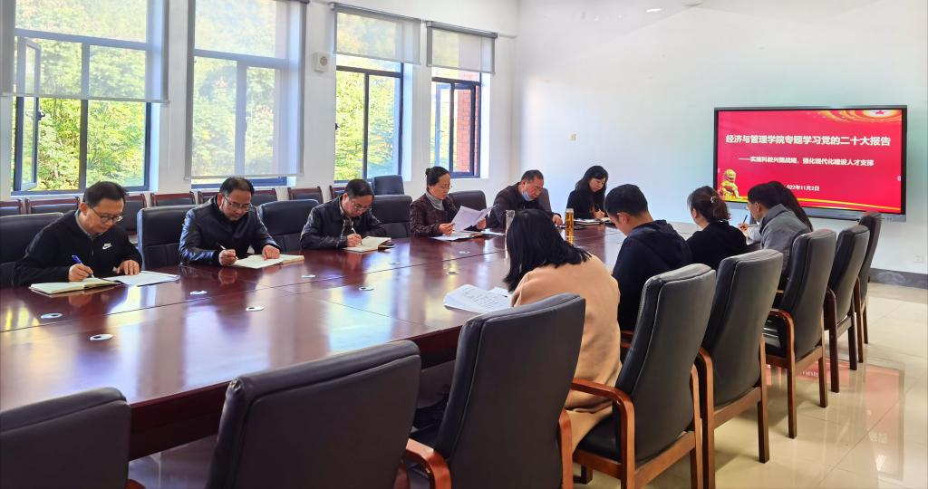2022年11月2日上午,太阳集团tcy8722在花溪校区公司会议室召开党委理论学习中心组(扩大)学习会议专题学习党的二十大报告,公司党政领导、党委委员、科级干部参加会议。会议由公司党委书记吕萍主持。