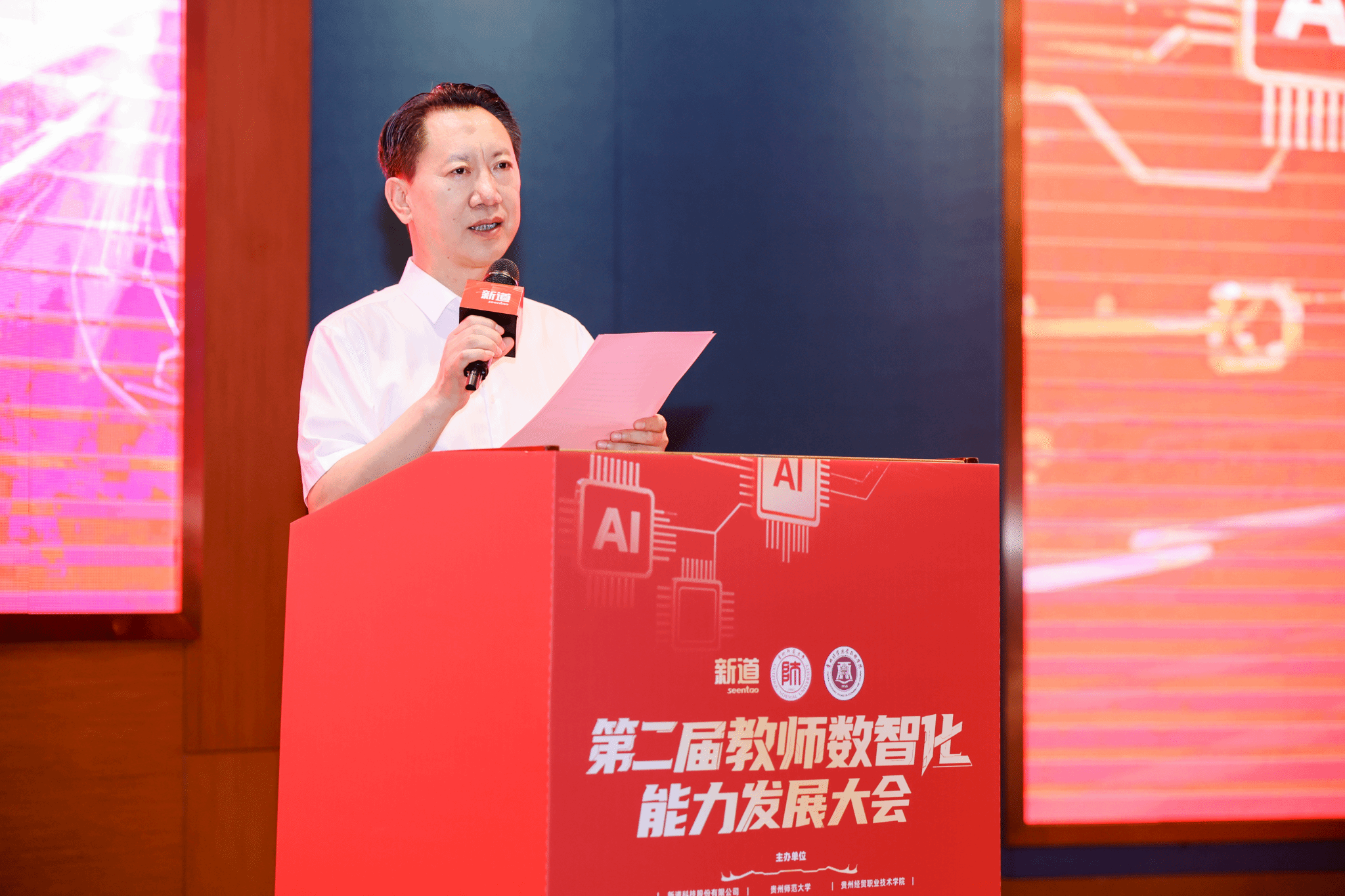 8月6日,由新道科技股份有限公司、太阳集团tcy8722、贵州经贸职业技术公司联合主办的第二届教师数智化能力发展大会在贵州贵阳(中国—东盟教育交流周永久会址)举行。来自全国各地高等院校、职业院校的院校领导、专家、骨干教师及企业代表等300余位嘉宾共聚一堂,围绕人工智能时代下教师角色转型与能力发展、AI赋能教育改革、课程建设与创新等议题进行深度研讨和交流。