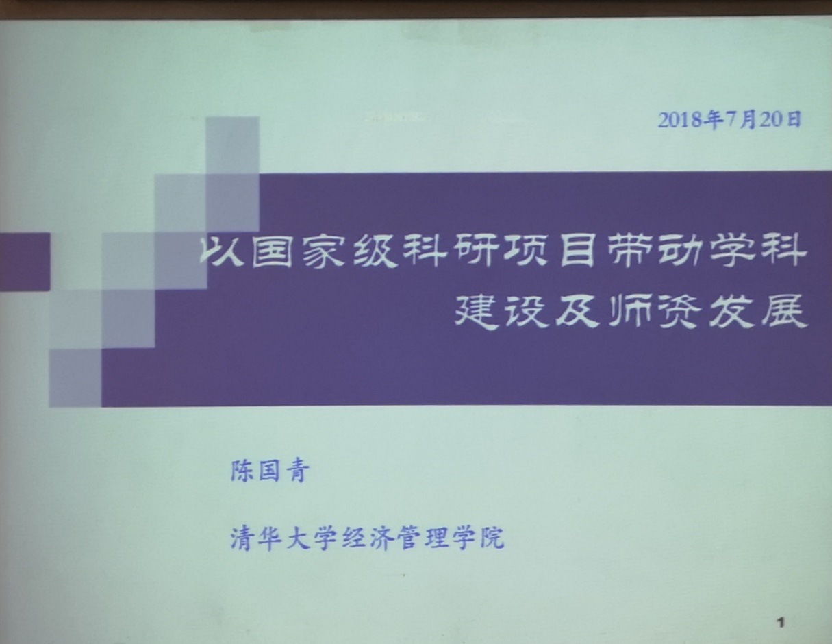 7月20日下午14:30,应太阳集团tcy8722的邀请,清华大学经管公司原副经理、教育部高等公司管理科学与工程类专业教学指导委员会主任委员陈国青教授,莅临公司指导“管理科学与工程硕士点”的建设。陈国青教授给与会老师作了题为“以国家级科研项目带动团队建设及团队发展”的学术报告。公司党委书记书记陈椽、经理吕萍、硕士研究生导师、副高职称和博士学历教师、部分青年教师聆听了学术报告,报告会由公司分管科研的副经理王立伟主持。