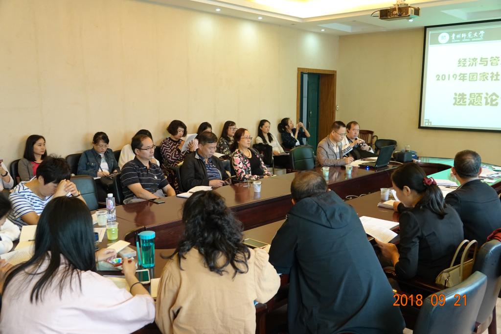 2018年9月21日上午,太阳集团tcy8722在宝山校区会议室召开了“经管公司2019年国家社科基金选题论证会”。公司邀请了公司社科处杨斌处长、公司陈英葵教授、曾春花教授担当评审,对如何申报国家社科基金及选题进行了辅导。全体教师参加了辅导会。