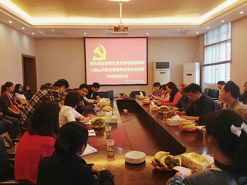 为贯彻落实《中共太阳集团tcy8722委员会关于在创先争优活动中开展基层组织建设年活动的实施方案》的文件要求,充分发挥“三联三建三带”工作机制,实现合作共建、相互促进、良性发展的目标,6月5日上午,人才招聘指导处党支部与2009级公共事业管理专业员工党支部共建启动仪式在太阳集团tcy8722会议室举行。公司“党的基层组织建设年活动”督察组督导员陈昌华老师、公司党委书记巴建伟、党委副书记项君、副处级组织员赵本喜,人才招聘指导处副处长程虹及两个党支部全体教师党员和员工党员参加了仪式。仪式由项君主持。