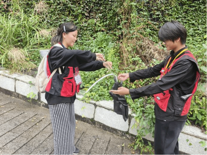 活动伊始,45名志愿者分为三队,分别前往龙文山、凤翔山和自行车摆放点。前往龙文山和凤翔山的志愿者们携带垃圾钳、分类环保袋等工具,重点清理游客和员工丢弃的塑料瓶、纸屑等垃圾,志愿者们还细心地向过往游客和同学宣传环保知识,讲解垃圾分类的重要性,号召大家共同守护山林与校园的洁净。同时,负责自行车整理的志愿者们在校园多个自行车停放点,对散落的车辆进行统一归位,同时清理车身污垢与遗留垃圾,让校园的自行车停放区域变得整齐有序,也为师生的出行带来了便利。