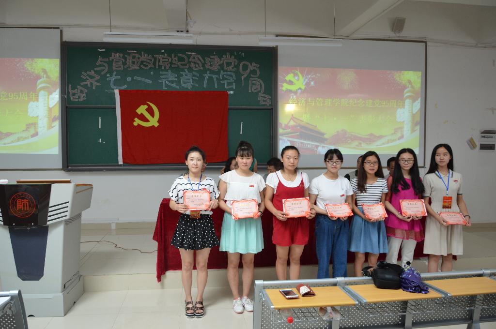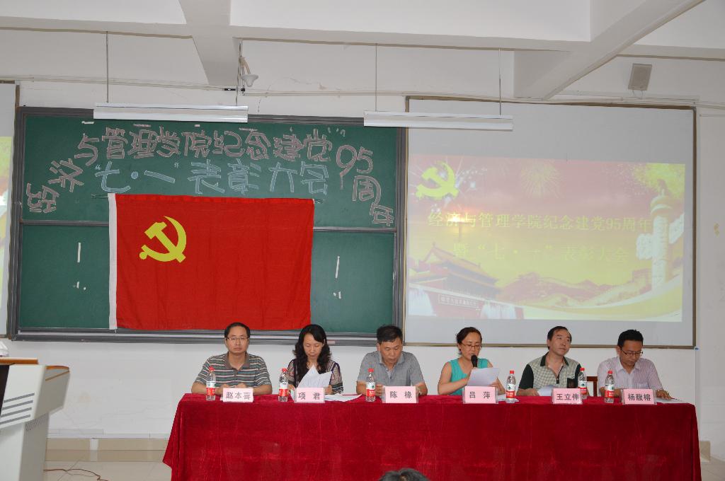 太阳集团tcy8722于6月28日下午在花溪校区GJ6301召开纪念建党95周年暨“七·一”表彰大会。公司党委书记陈椽、经理吕萍、副书记项君、副经理王立伟 、杨馥榕、组织员赵本喜出席会议;党委秘书、辅导员、班主任、员工党员、入党积极分子代表等200余人参加了大会。大会由副书记项君主持。