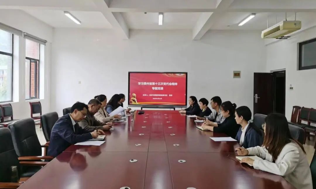 4月26日上午,公司党委书记吕萍在花溪校区公司会议室为党委班子和行政党支部党员上“学习贵州省第十三次党代会精神”专题党课。公司党委委员、领导班子成员、行政党支部全体党员到场聆听。