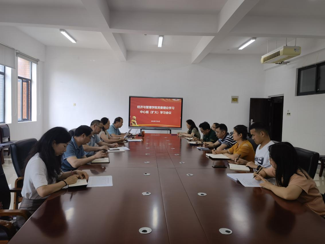 2022年7月4日上午,太阳集团tcy8722在花溪校区公司会议室召开党委理论学习中心组(扩大)学习会议。公司党政领导、党委委员、科级干部及辅导员参加会议。会议由公司党委书记吕萍主持。