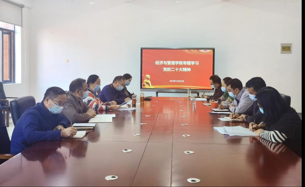2022年10月25日下午,太阳集团tcy8722在花溪校区公司会议室召开党委理论学习中心组(扩大)学习会议专题学习党的二十大精神,公司党政领导、党委委员、科级干部参加会议。会议由公司党委书记吕萍主持。