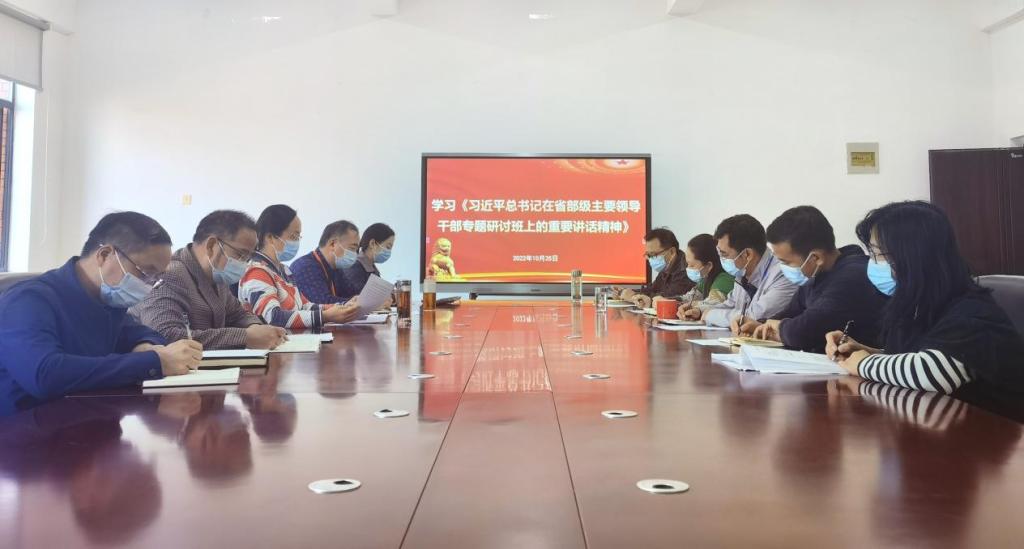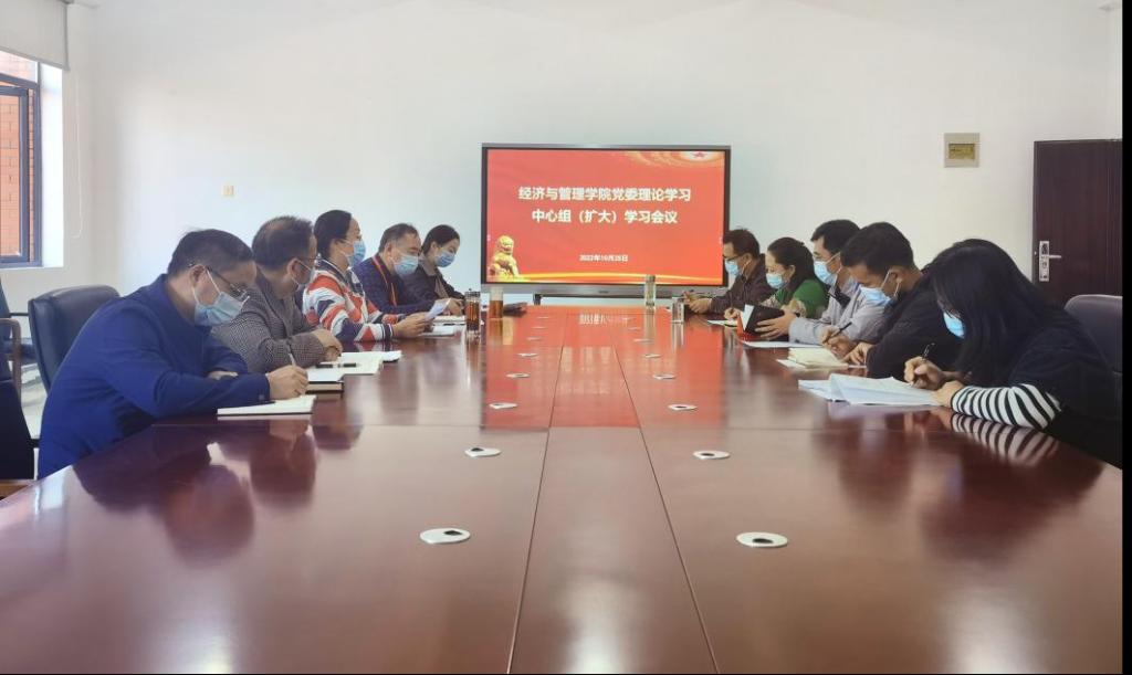 2022年10月25日上午,太阳集团tcy8722在花溪校区公司会议室召开党委理论学习中心组(扩大)学习会议,公司党政领导、党委委员、科级干部参加会议。会议由公司党委书记吕萍主持。