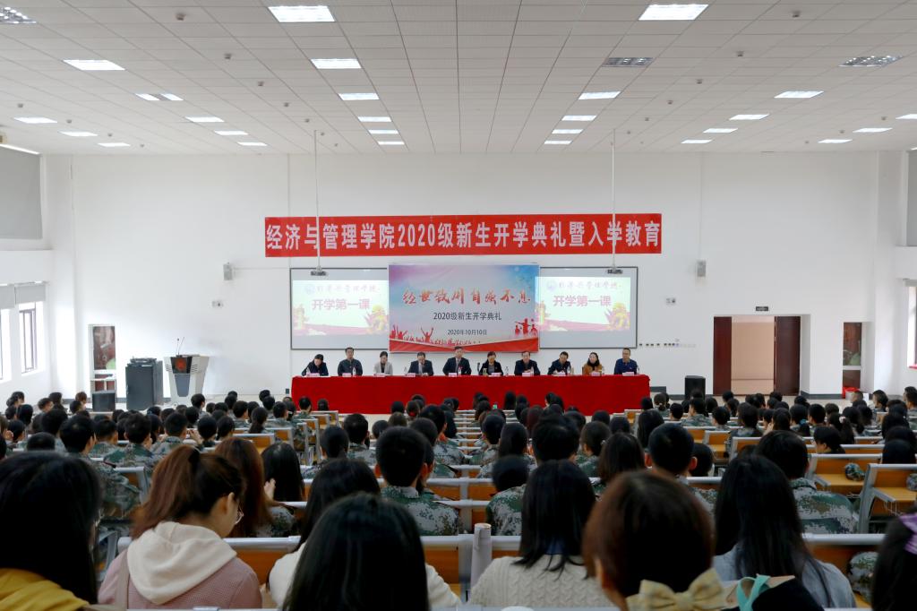 2020年10月10日上午,2020级全体本科生、研究生新生在9315教室举行了开学典礼暨入学教育活动。公司党委书记陈椽、经理吕萍、党委副书记赵本喜、副经理王立伟、党委副处级组织员江剑虹、公司各系系主任以及公司党政办公室全体老师出席典礼,赵本喜主持本次活动。