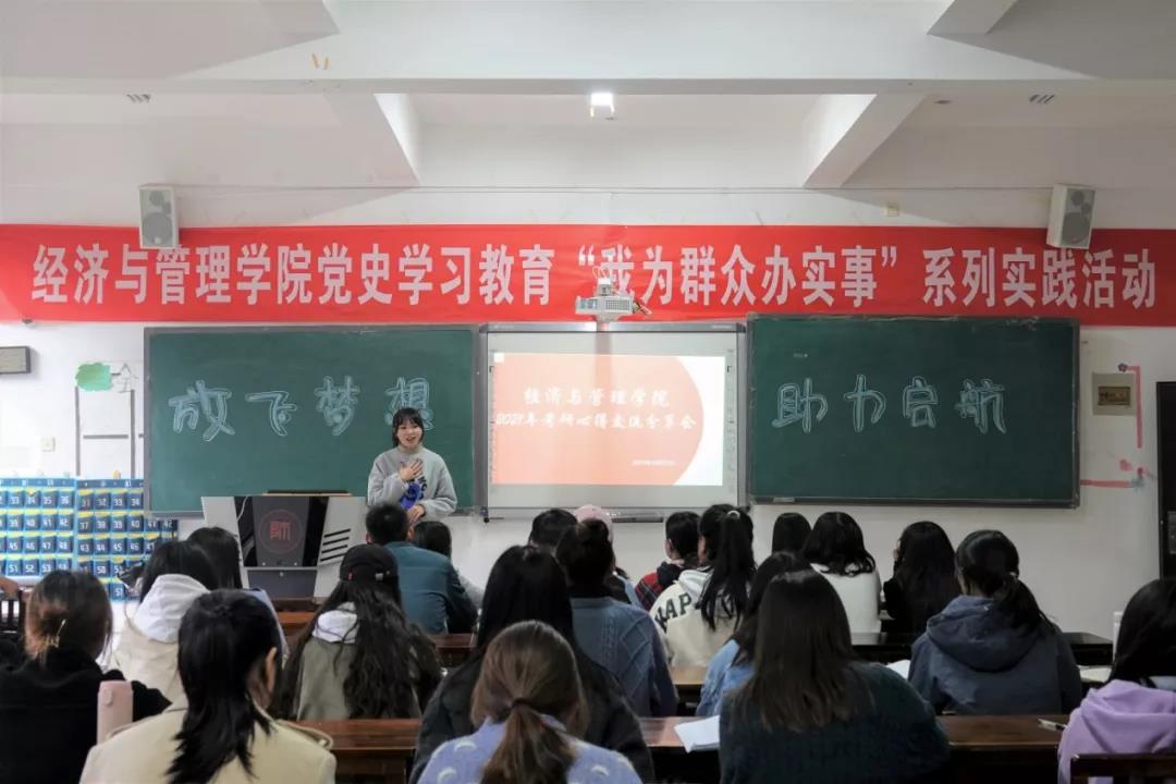 为帮助公司学子进一步了解考研,更好地做好考研准备,增强考研信心,10月27日下午,太阳集团tcy8722在公司楼9232教室举办了“放飞梦想·助力启航”考研心得交流分享会。此次交流分享会由2020级和2021级研究生代表担任分享嘉宾,2018级有考研计划的本科生到场聆听。