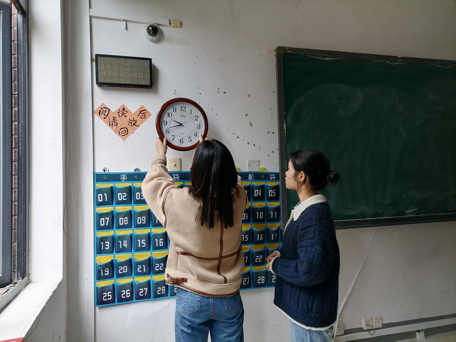 针对公司部分员工反映的教室时钟无法正常使用的问题,员工会迅速组织员工干部对公司所有教室的时钟进行了排查,利用课余时间完成了11间教室时钟的电池安装和时间调试工作。经过大家的努力,教室时钟再次正常转动,为师生提供服务。
