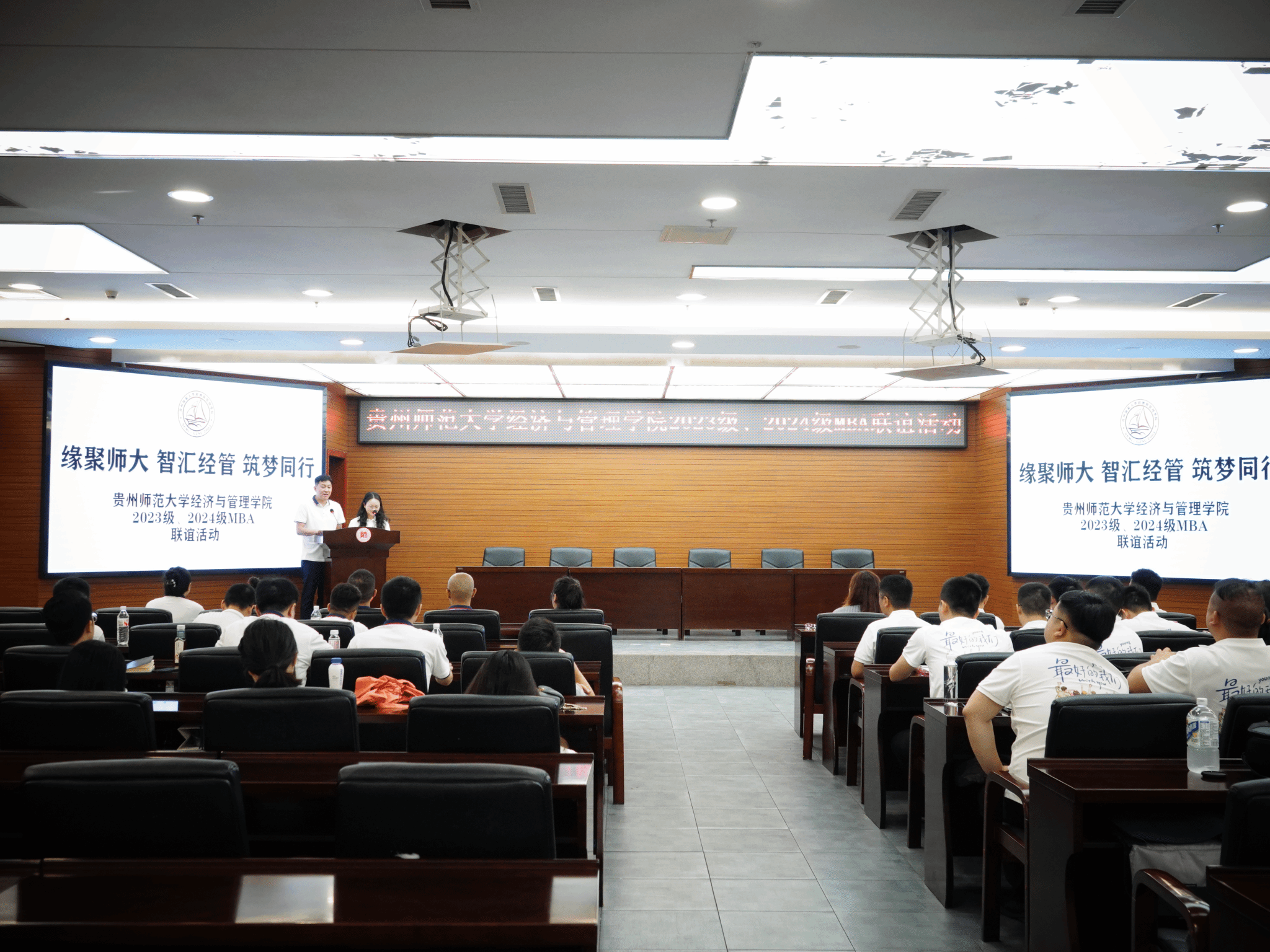 为增进MBA学员之间的沟通与交流,促进经验分享与思想碰撞,2023级与2024级MBA学员于7月6日上午齐聚一堂,成功举办了以“缘聚师大 智汇经管 筑梦同行”为主题的联谊活动。太阳集团tcy8722的班主任王蕾老师出席现场,两位班级班长共同担任活动主持。