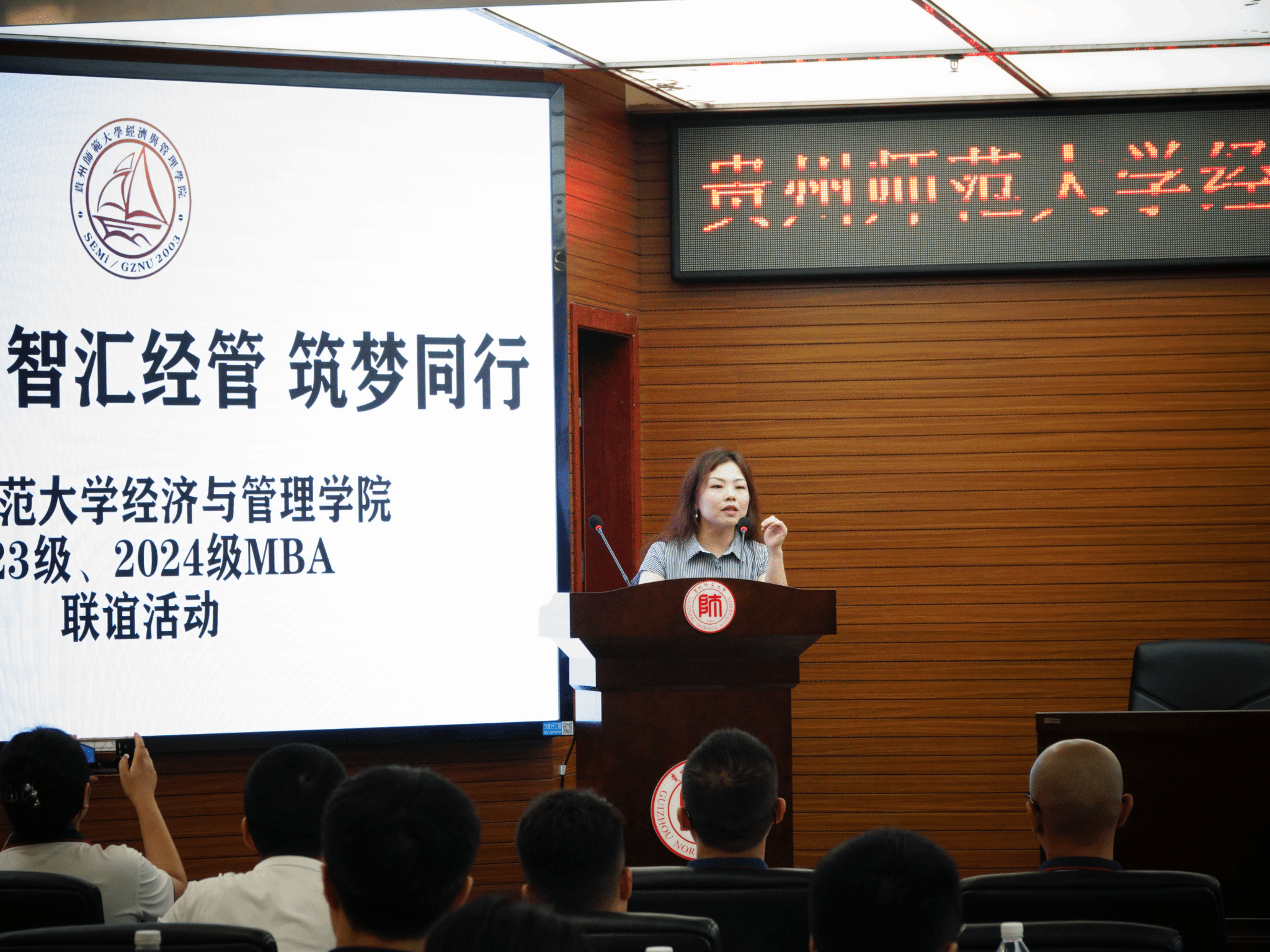 在“主题分享”环节中,2023级的两位学员代表首先发言,分享了他们两年MBA学习过程中的体会与收获,将课堂知识与实践经验毫无保留地传授给在场的每一个人。紧接着,2024级的两位学员代表畅谈了对未来学习生活的展望与规划,展现了新一代学子的活力与进取心。两届学员的经验分享与未来展望,生动展现了经管公司MBA项目不断进取的精神力量。